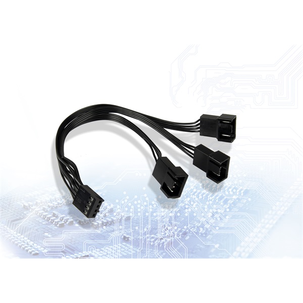 4 tűs PWM Y-kábel három PWM ventilátor csatlakoztatásához egy PWM fejléccel az alaplapon.