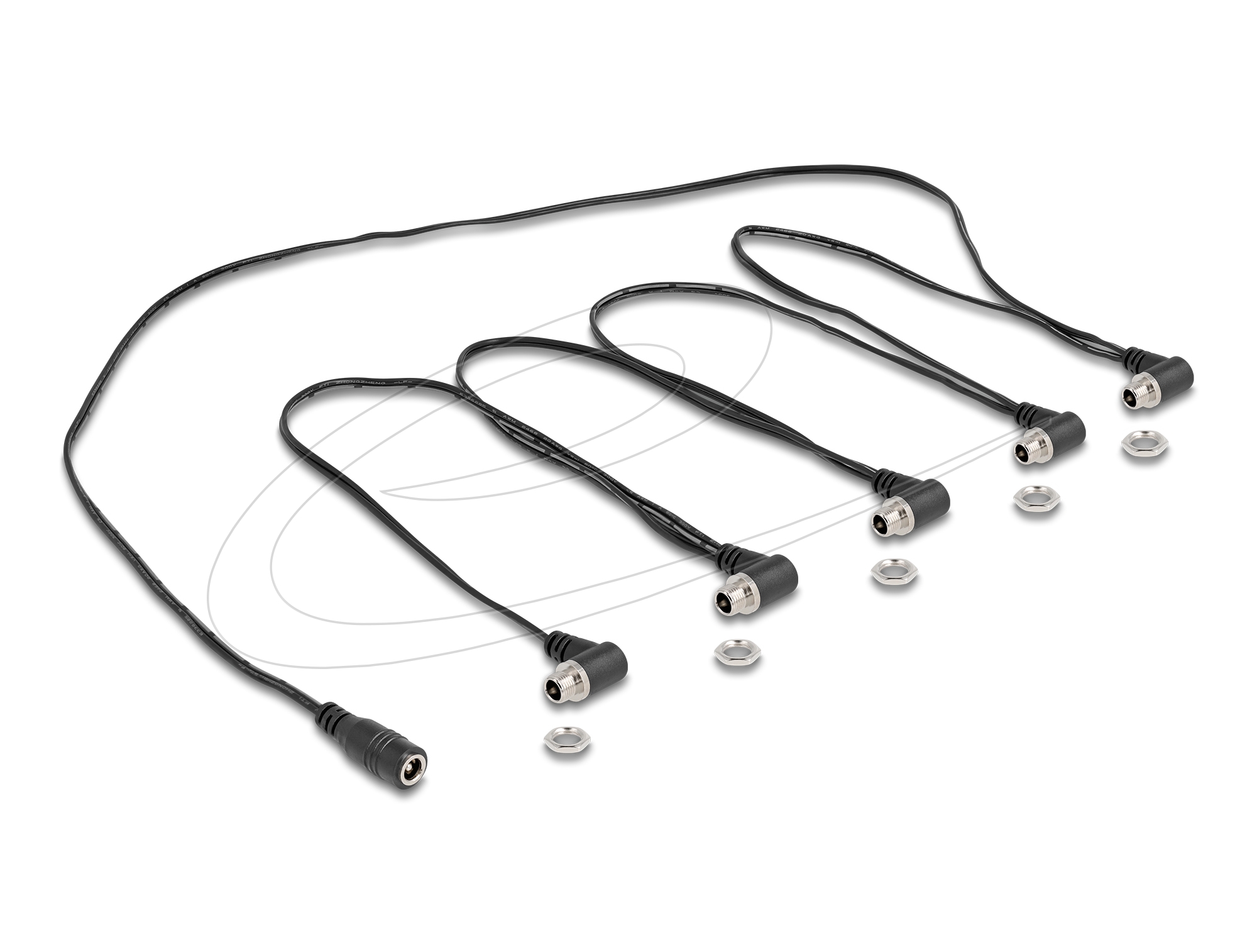 Delock DC kábel 1 x anya egyenes - 5 x anya 5,5 x 2,1 mm-es 90 fokban hajlított beépített csatlakozáshoz, fekete színű (90122)