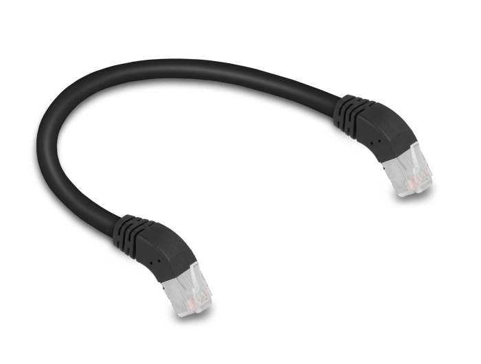 A Delock hálózati kábellel különböző hálózati eszközök kapcsolhatók össze pl. egy hálózati vezérlő egy switch-hez vagy egy patch panelhez. Hajlított csatlakozó fejjel A hajlított csatlakozó lehetővé teszi helytakarékos installációt szűk helyeken eszközök mögött vagy hálózati kabinetekben. Műszaki adatok Csatlakozó: 1 x RJ45 apa 45 fokban lefelé hajló 1 x RJ45 apa 45 fokban lefelé hajló Cat.6A specifikáció Árnyékolt (S/FTP) Sávszélesség: 500 MHz Kábel vastagsága: 26 AWG Kábelátmérő: kb. 6,0 mm Kábelborítás anyaga: LSZH (halogénmentes) Szín: fekete Hosszúság: kb. 0,25 m Rendszerkövetelmények Egy szabad RJ45-csatlakozóhüvely A csomag tartalma Patch kábel Csomag Zárható műanyag tasakGyártó: Delock