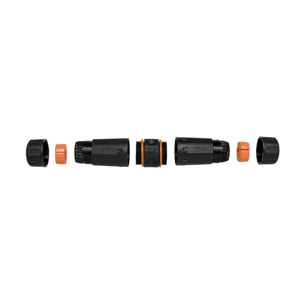 Equip 221162 is high-quality RJ45-RJ45 Cat.6 inline coupler with a high protection class of IP68 (waterproof) and is particularly suitable for outdoor applications. By opening the two-sided cable glands, two RJ45 connecting cables can be connected .