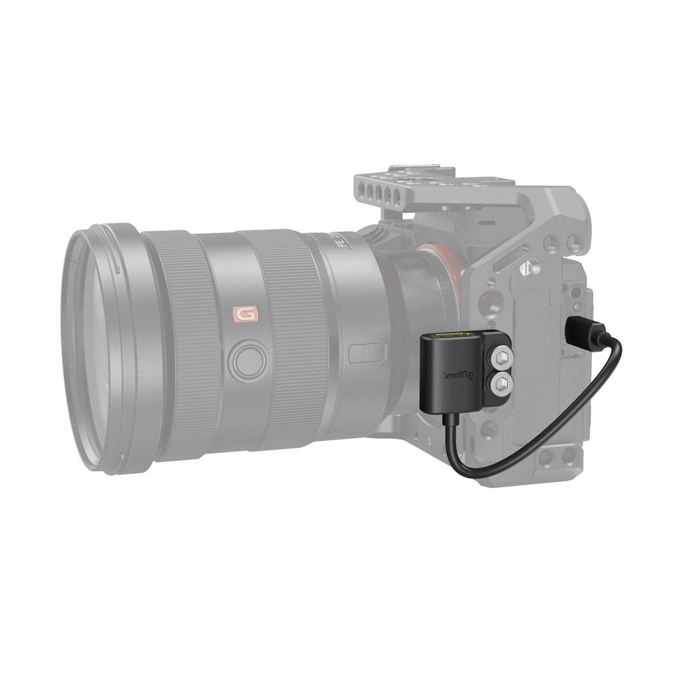 A SmallRig Ultra Slim 4K Adapter Cable (D to A) 3021 egy kiváló minőségű adapterkábel (Micro-HDMI apa – teljes méretű HDMI anya) a kamera beállításához. Ez az ultravékony 2.0 verzió, és akár 4K@60Hz felbontást is támogat, és visszafelé kompatibilis. Két 1/4-20”-es csavarral rendelkezik, amelyek szorosan rögzítik a kábel anya oldalát egy kameracage oldalához vagy egy L konzolhoz, hogy megvédjék a kamera portját és biztosítsák a stabilabb csatlakozást. Az ultravékony kialakítás 3,6 mm-es külső átmérőjével vékonyabb és puhább, mint egy hagyományos kábel. Ez egy tökéletes adapterkábel, amelynek segítségével a kamera portját a kívánt irányba változtathatja.