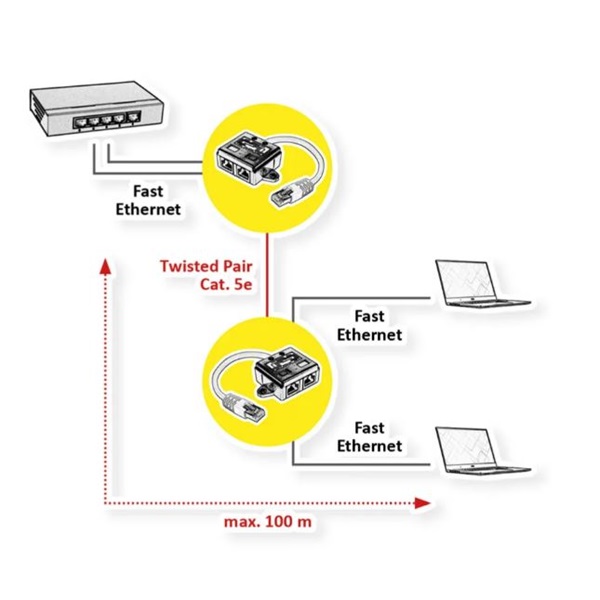 VALUE T-Adapter CAT5e, UTP fehér színben, két LAN csatlakoztatásához egy darab 8 eres kábelen keresztül.