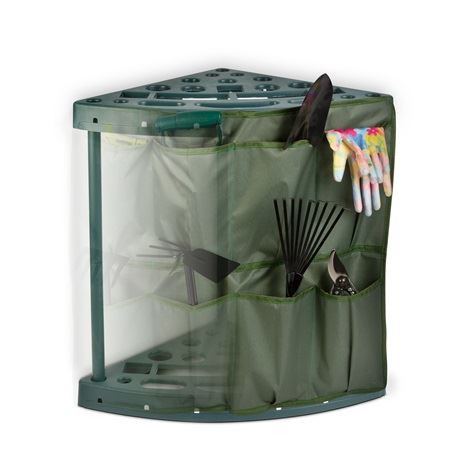 Nagyméretű kerti szerszámtartó, amely alkalmas bármilyen méretű kéziszerszám tárolására. A különböző méretű lyukaknak köszönhetően minden szerszámnak megtalálja a megfelelő helyet. Alkalmas lehet kisméretű kéziszerszámok, például: metszőolló, kapák, palántázók, stb... tárolására, de hagyományos méretű lapátok, ásók, gereblyék, locsolótömlő tárolása is megoldható. A szerszámtartót akár magával is viheti a kertbe, így munkavégzés során minden szerszám rendelkezésre áll, de a 4 db rögzítési pont segítségével falra is rögzíthető a konzol.