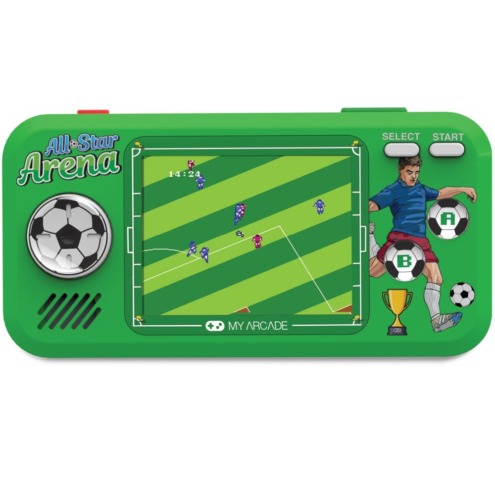 Tartalmazza a GOAL!™, a BASES LOADED™ 1, 2, 3 és 4, a RACKET ATTACK™ és a HOOPS™ teljesen játszható verzióit. Az All-Star Arena Pocket Player® színes, 2,75 hüvelykes képernyővel rendelkezik, amely mind a 7 játékot élénken megjeleníti, és az ergonómiára és a kompakt kialakításra fektetve több órányi játékra finomhangolt.