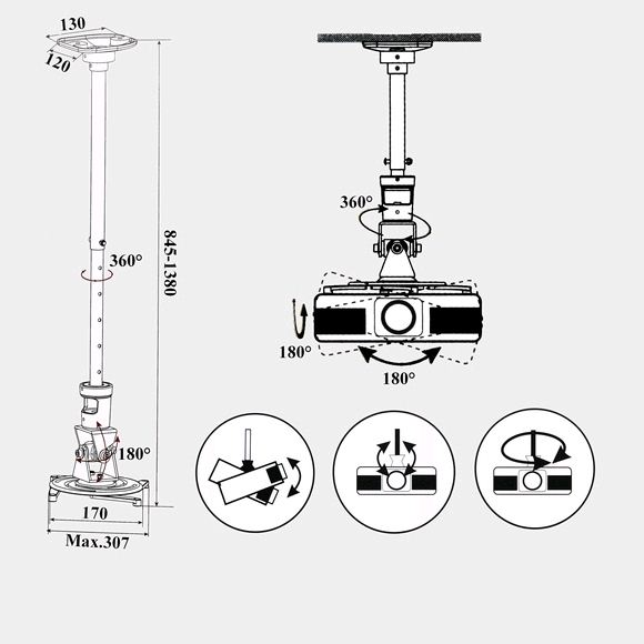 Harmantrade PR01+1380 mm toldócső mennyezeti projektortartó