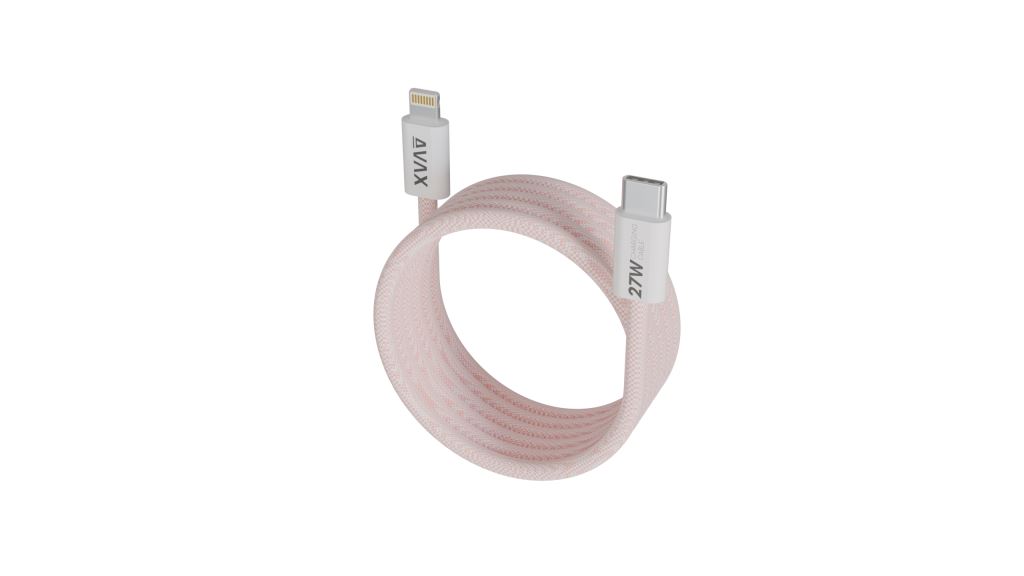 AVAX MAGNETY USB-C - Lightning fonott borítású mágneses gyorstöltő kábel 1m rózsaszín (CB611P)