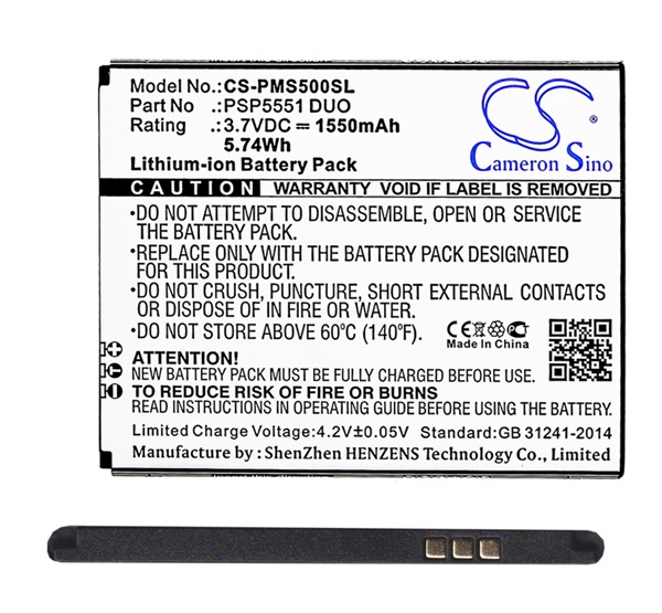 Cameron Sino Li-Ion akku (3.7V/1550mAh, Prestigio PSP5551DUO kompatibilis) FEKETE (CS-PMS500SL)