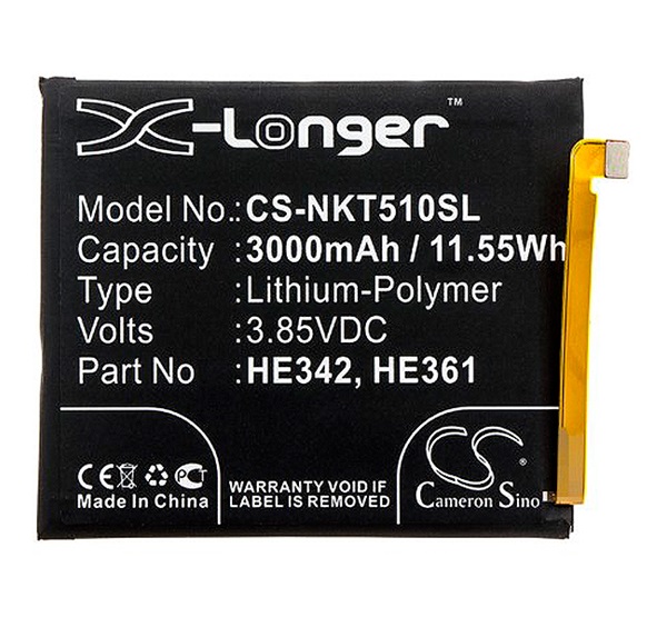 Cameron Sino Li-Polymer akku (3.85V/3000mAh, Nokia HE342 kompatibilis) FEKETE Nokia 6.1 Plus (X6 2018) / 5.1 Plus (X5) (CS-NKT510SL)