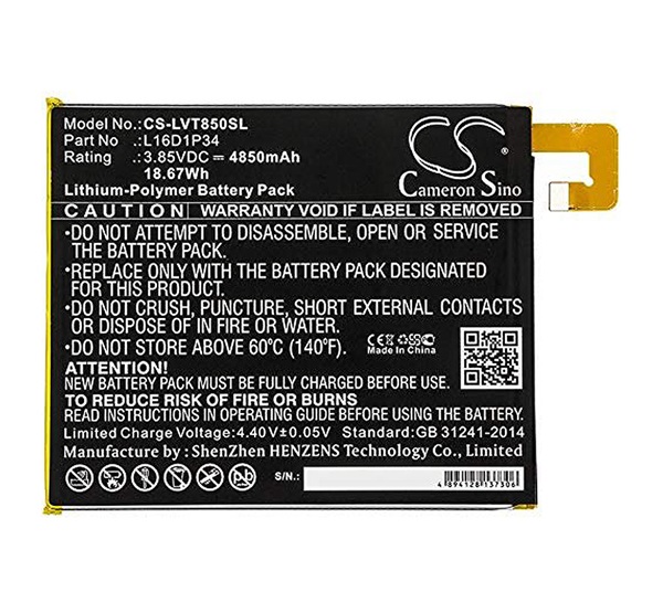 Cameron Sino Li-Polymer akku (3.85V/4850mAh, Lenovo L16D1P34 kompatibilis) FEKETE Lenovo Tab 4 8 (TB-8504F) (CS-LVT850SL)
