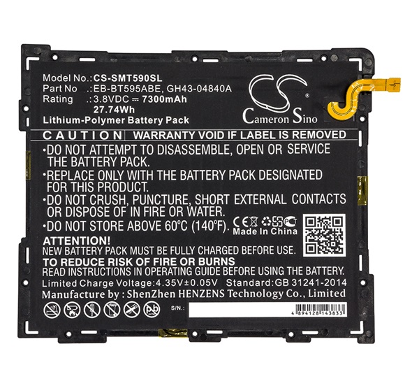 Cameron Sino Li-Polymer akku (3.8V/7300mAh, Samsung EB-BT595ABE kompatibilis) FEKETE Samsung Galaxy Tab A 10.5 LTE (2018) SM-T595 / Galaxy Tab A 10.5