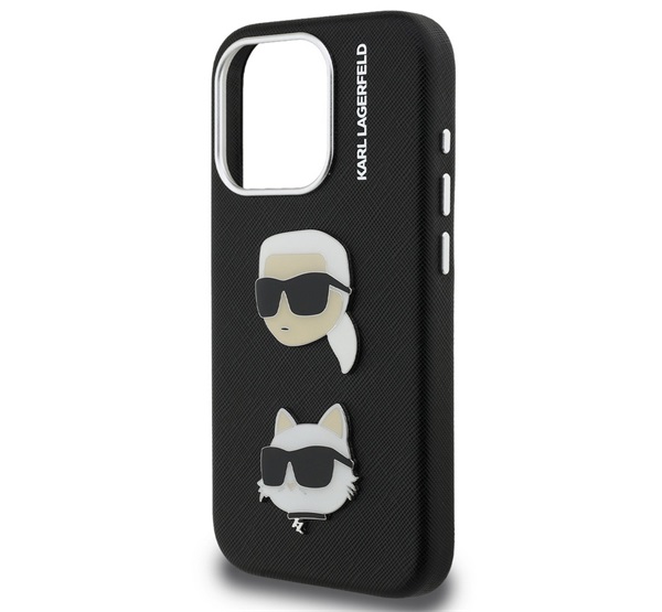 CG MOBILE KARL LAGERFELD GRAINED PU K&CH HEADS szilikon telefonvédő (ütésállóság, bőr hatású hátlap, 3D) FEKETE Apple iPhone 15 Pro Max (GP-171031)