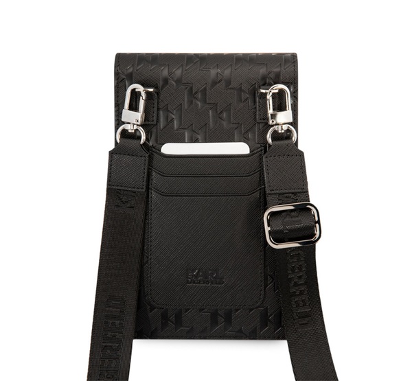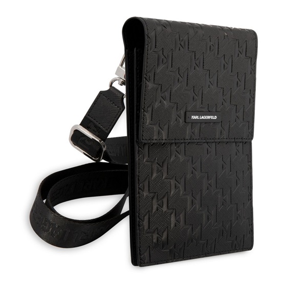 CG MOBILE KARL LAGERFELD SAFFIANO MONOGRAM kézitáska álló (univerzális, bőr hatású, vállpánt) FEKETE (KLWBSAMSMK)