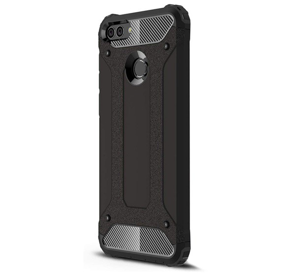 Defender műanyag telefonvédő (közepesen ütésálló, légpárnás sarok, szilikon belső, fémhatás) FEKETE [Honor 7x]