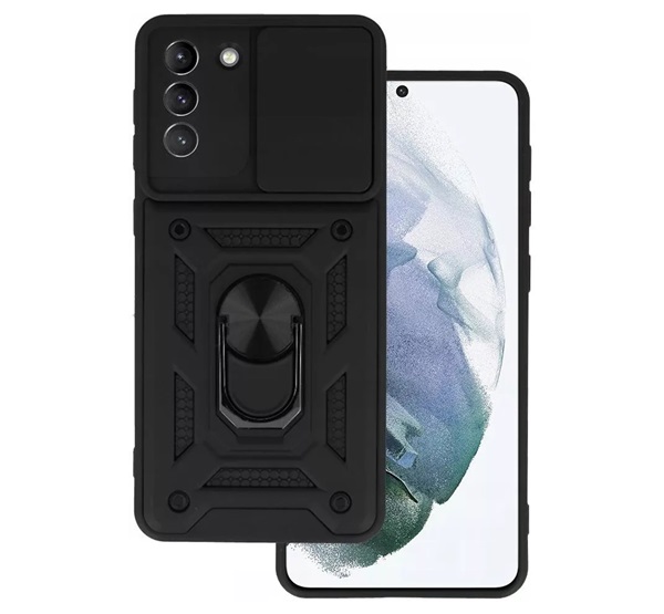 Defender szilikon telefonvédő (ütésállóság, tartógyűrű, kameravédő) FEKETE Samsung Galaxy S21 (SM-G991) "Gigapack csomagolás" (GP-136554)