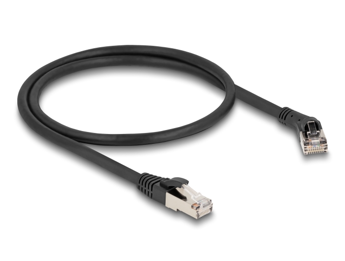 Ez a Delock hálózati kábel használható különböző eszközök összekötésére és alkalmas 40GBASE-T Ethernet applikációhoz egy 2 GHz frekvenciával és akár 40 Gb/s adatátviteli sebességgel. Hajlított csatlakozó fejjel A szögletes csatlakozó lehetővé teszi a helytakarékos telepítést szűk helyeken a készülékek vagy a hálózati szekrények mögött. Műszaki adatok Csatlakozó: 1 x RJ45 apa 45 -ban jobbra hajlított 1 x RJ45 dugó egyenes 1:1 csatlakoztatás Cat.8.1 specifikáció Akár 40 Gbps sebességű adatátvitel Sávszélesség: 2000 MHz Árnyékolt (S/FTP) Kábel vastagsága: 28 AWG Kábelátmérő: kb. 6,0 mm Kábelborítás anyaga: LSZH (halogénmentes) Működési hőmérséklet: -20 C ~ 60 C Szín: fekete Hosszúság: kb. 0,5 m A csomag tartalma Patch kábel Csomag Zárható műanyag tasakGyártó: Delock