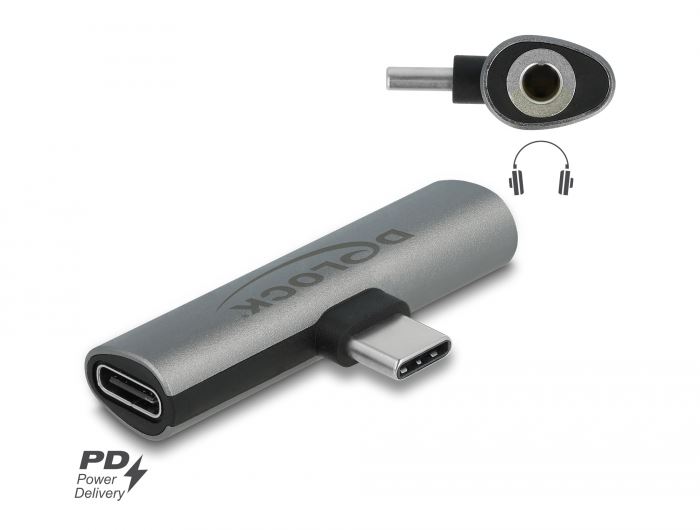 Delock USB-C - sztereo jack anya és USB-C PD adapter (64186)