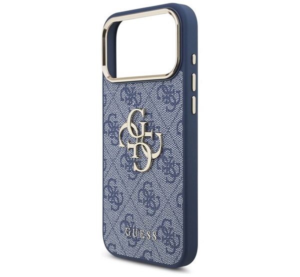 Guess 4G BIG CLASSIC LOGO szilikon telefonvédő (ütésállóság, bőr hatású hátlap) KÉK/BARNA Apple iPhone 17 Pro Max (GUHCP17X4GMGCBL)