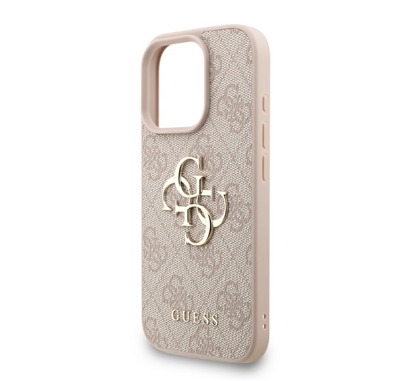 Guess 4G METAL LOGO STRAP műanyag telefonvédő (ütésállóság, bőr hatású hátlap + kézpánt) RÓZSASZÍN Apple iPhone 16 Pro (GUHCP16LP4GMGSP)