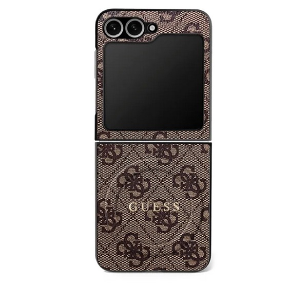 Guess 4G RING CLASSIC LOGO szilikon telefonvédő (ütésállóság, textil hátlap, MagSafe) SÖTÉTBARNA Samsung Galaxy Z Flip7 (SM-F766) (GUHMZF7P4MSEGCW)
