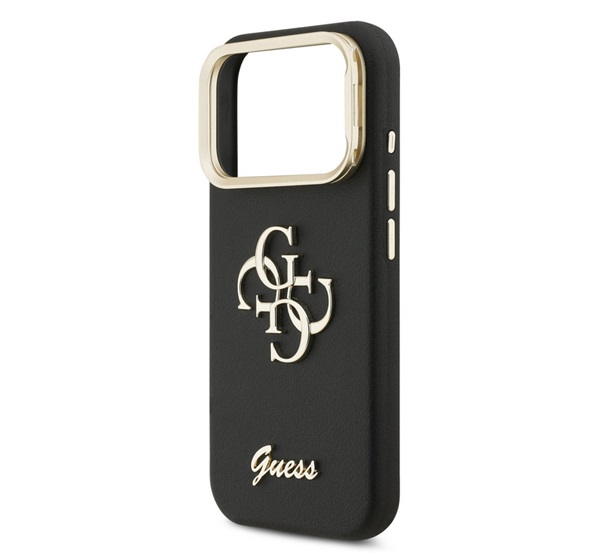 Guess GRAINED BIG 4G & STAND CAMERA szilikon telefonvédő (műanyag hátlap, ECO bőr hatású hátlap, kitámasztó) FEKETE Apple iPhone 17 Pro (GUHCP17LPCS4G
