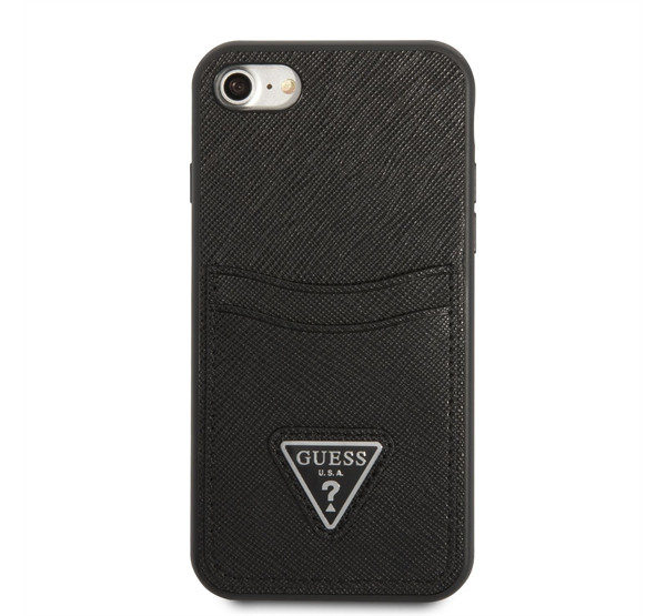 Guess Saffiano Double Card Apple iPhone SE 2022/2020/8/7 bőr hátlap tok, fekete (GUHCI8PSATPK)