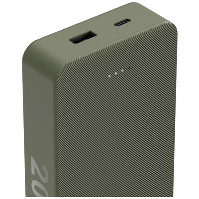 Műszaki adatok: Csatlakozó (powerbank): USB-A 1x, USB-C® 1x · Elem-/akkutechnológia: LiPo · Gyártói szín: Zöld · Kapacitás (mAh, Ah): 20000 mAh · Méret, hossz: 130 mm · Méret, magasság: 26 mm · Méret, szélesség: 70 mm · Súly: 368 g · Töltési csatornák/rekeszek: 2 · Töltési technológia: Fast Charge · Töltőáram (max.): 3000 mA · USB-C bemeneti feszültség (max.): 5 V · USB-C bemeneti áram (max.): 3 A · USB-C kimeneti feszültség (max.): 5 V · USB-C kimeneti áram (max.): 3 A · Vezeték nélküli töltő funkció: Nem · Üzemi feszültség (LOV): USB-C®