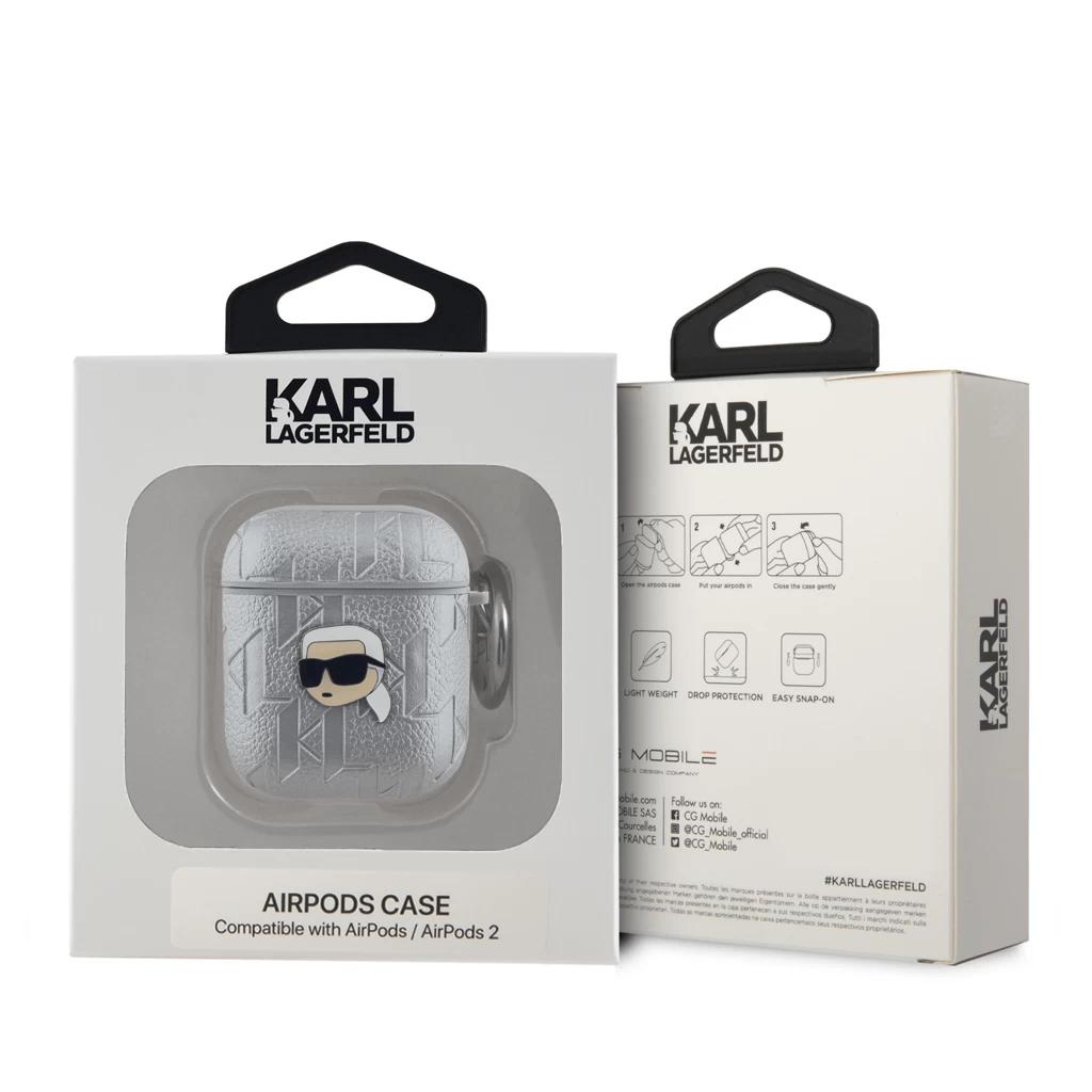 Karl Lagerfeld PU domborított Karl Head Case AirPods 1/2 készülékhez ezüst
