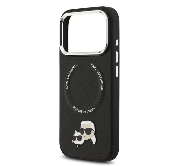 Karl Lagerfeld PU KARL AND CHOUPETTE HEADS PINS szilikon telefonvédő (ütésállóság, bőr hatású hátlap, MagSafe) FEKETE Apple iPhone 17 Pro Max (KLHMP17