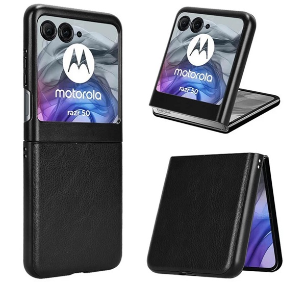 Műanyag telefonvédő (bőr hatású hátlap) FEKETE Motorola Razr 50 5G (XT2453-1) "Gigapack csomagolás" (GP-163442)