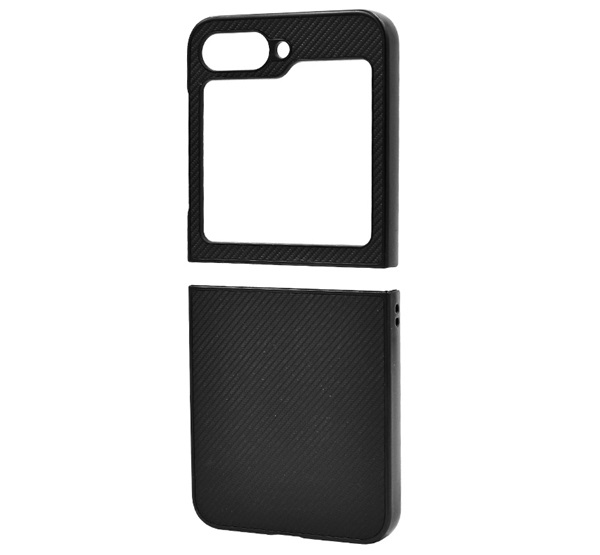 Műanyag telefonvédő (ütésállóság, bőr hatású hátlap, karbon minta) FEKETE Samsung Galaxy Z Flip6 (SM-F741) "Gigapack csomagolás" (GP-161564)