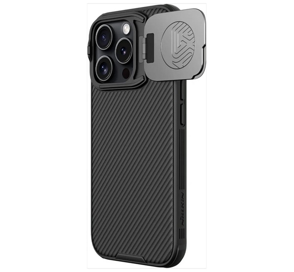 Nillkin CAMSHIELD PROP szilikon telefonvédő (ütésállóság, kameravédő, kitámasztó, csíkos) FEKETE Apple iPhone 16 Pro Max (GP-163460)