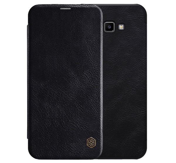 NILLKIN QIN tok álló, bőr hatású (FLIP, oldalra nyíló, bankkártya tartó) FEKETE [Samsung Galaxy J4 Plus (SM-J415F)]