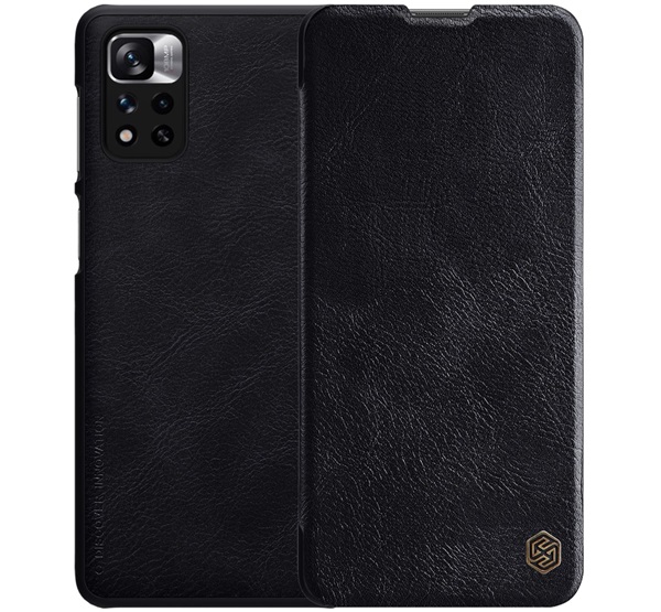 Nillkin QIN tok álló, bőr hatású (FLIP, oldalra nyíló, kártyazseb) FEKETE Xiaomi Poco X4 5G NFC / Redmi Note 11 Pro Plus 5G (GP-111677)