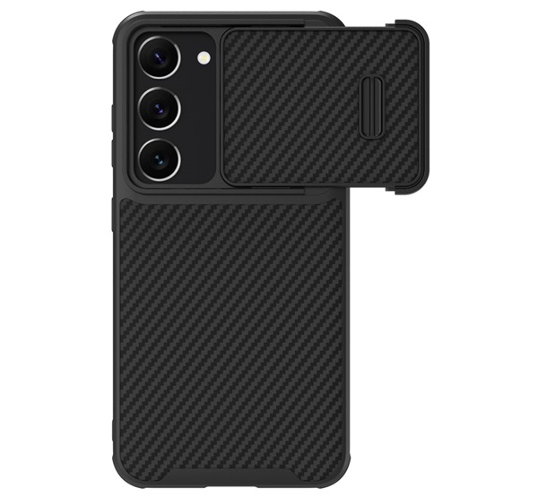 Nillkin SYNTHETIC FIBER S műanyag telefonvédő (környezetbarát, kameravédő, karbon minta) FEKETE Samsung Galaxy S23 (SM-S911) (GP-136099)