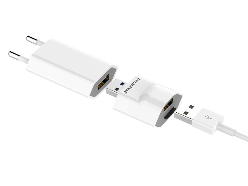 Mentse el fényképeit, miközben tölti a telefonját. Egyszerűen csak csatlakoztassa a Photocube eszközt a töltőhöz és a mentés automatikusan elindul. Biztonsági mentés és töltés egyszerre!