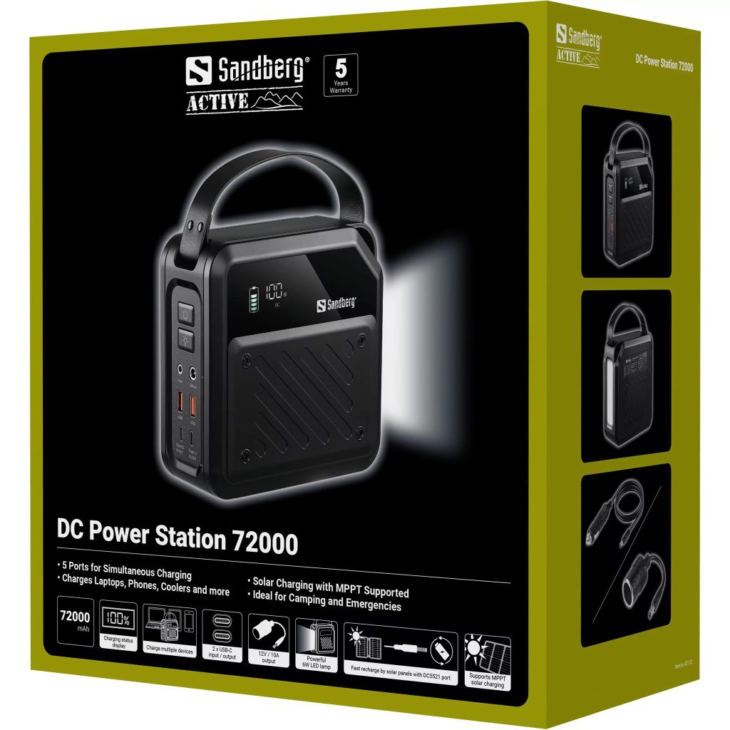 A Sandberg DC Power Station 72000 a te mobil áramforrásod, 72,000 mAh / 270 Wh kapacitással. Két erős 100W-os USB-C PD portot, két USB-A QC3.0 portot akár 22W-ig, és egy 12V-os DC kimenetet kapsz, így töltheted a laptopodat, tabletedet, telefonodat és még sok mást. Mind az öt kimenet egyszerre használható! Adapterekkel érkezik az autó 12V-os aljzatához, így könnyedén csatlakoztathatsz autós felszerelést, hűtőt vagy pumpát közvetlenül. Támogatja a töltést mind USB-C-n, mind napelem (MPPT) segítségével a DC bemeneten keresztül. A beépített LED lámpával készen állsz mindenre, a kempingezéstől az áramkimaradásokig.