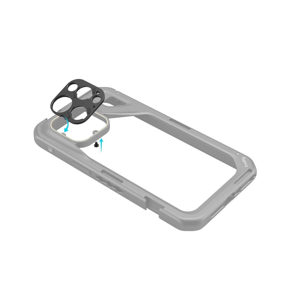 A SmallRig T-Series Lens Back Mount Plate for iPhone 15 Pro Max / 15 Pro Cage 4399 csavarral és nyílással zárható T-sorozatú és más hasonló rögzítésű objektívekhez csatlakoztatható. Kicserélhető az eredeti cage M-rögzítésű hátlapjával, és pontosan fúrt, hogy tökéletesen illeszkedjen az iPhone ultraszéles látószögű objektívjéhez.