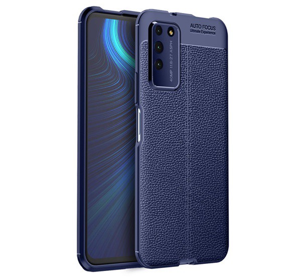 Szilikon telefonvédő (közepesen ütésálló, bőr hatású, varrás minta) SÖTÉTKÉK [Honor X10 5G]
