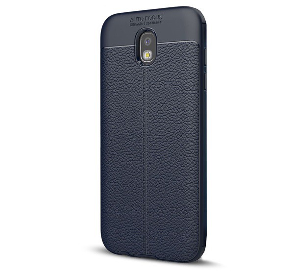 Szilikon telefonvédő (közepesen ütésálló, bőr hatású, varrás minta) SÖTÉTKÉK [Samsung Galaxy J3 (2017) SM-J330 EU]