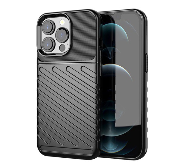 Szilikon telefonvédő (közepesen ütésálló, csíkos, dombor minta) FEKETE [Apple iPhone 13 Pro]