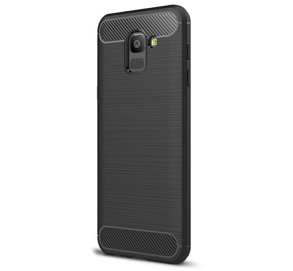 Szilikon telefonvédő (közepesen ütésálló, légpárnás sarok, szálcsiszolt, karbon minta) FEKETE [Samsung Galaxy J6 (2018) SM-J600F]