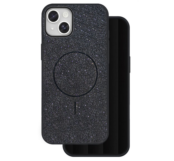 Szilikon telefonvédő (műanyag hátlap, kameravédő, MagSafe, csillogó) FEKETE Apple iPhone 14 "Gigapack csomagolás" (GP-171526)