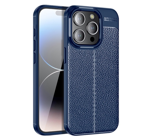 Szilikon telefonvédő (ütésállóság, bőr hatású, varrás minta) SÖTÉTKÉK Apple iPhone 15 Pro "Gigapack csomagolás" (GP-144914)