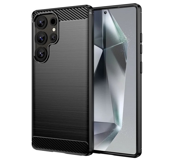 Szilikon telefonvédő (ütésállóság, légpárnás sarok, szálcsiszolt, karbon minta) FEKETE Samsung Galaxy S25 Ultra (SM-S938) "Gigapack csomagolás" (GP-16
