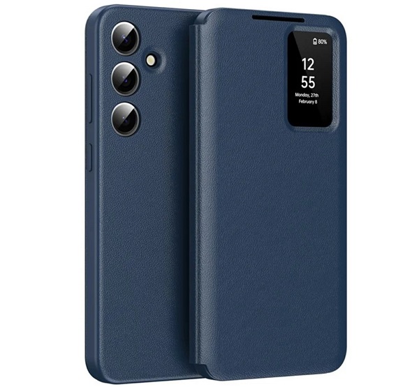 Tok álló (aktív FLIP, oldalra nyíló, Smart View Cover) SÖTÉTKÉK Samsung Galaxy A36 5G (SM-A366) / Galaxy A56 5G (SM-A566) "Gigapack csomagolás" (GP-17
