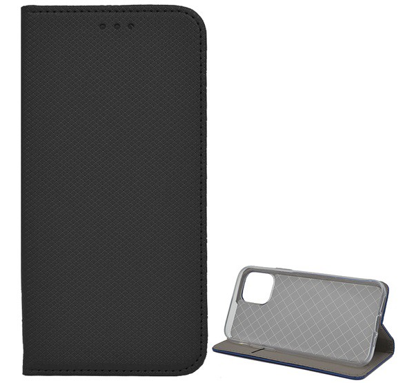 Tok álló, bőr hatású (FLIP, oldalra nyíló, asztali tartó funkció, csuklópánt, rombusz minta) FEKETE [Apple iPhone 11 Pro]