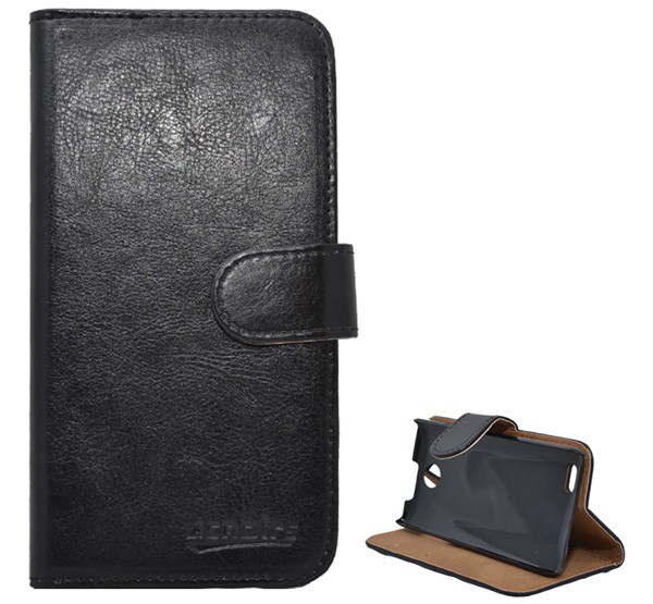 Tok álló, bőr hatású (FLIP, oldalra nyíló, asztali tartó funkció) FEKETE [ZTE Kis II Max]
