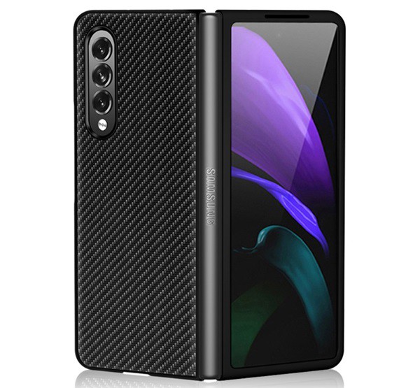 Tok álló, bőr hatású (FLIP, oldalra nyíló, asztali tartó funkció, karbon minta) FEKETE [Samsung Galaxy Z Fold3 5G (SM-F926)]