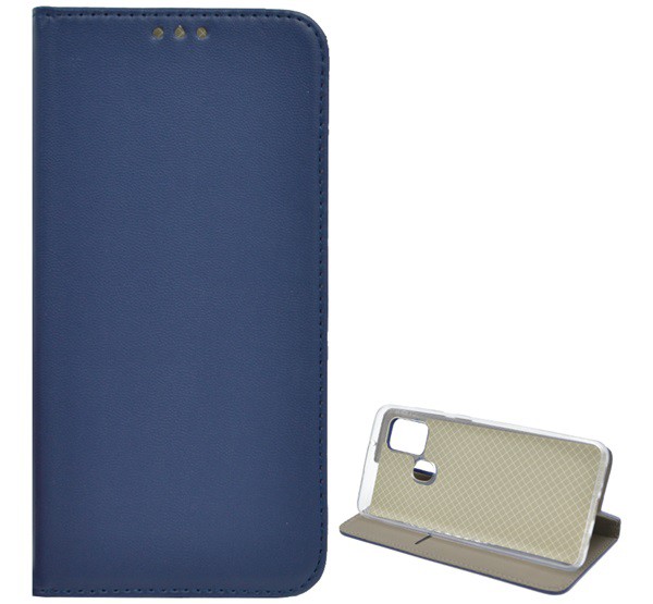 Tok álló, bőr hatású (FLIP, oldalra nyíló, asztali tartó funkció) KÉK [Samsung Galaxy A21s (SM-A217F)]