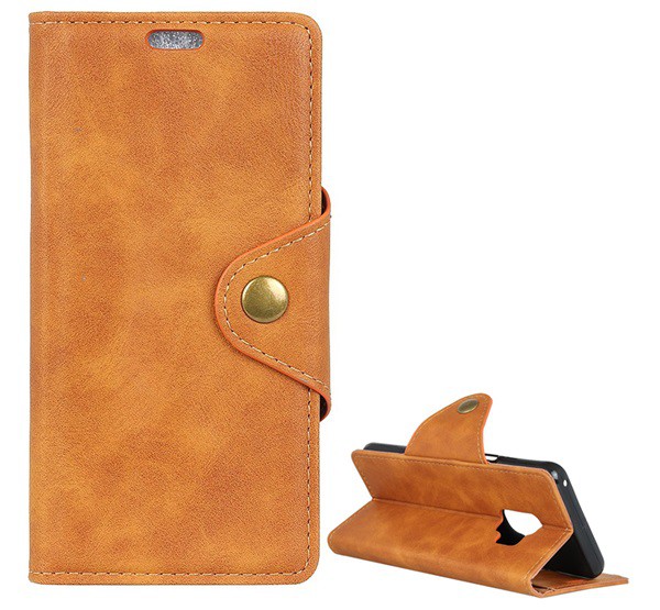 Tok álló, bőr hatású (FLIP, oldalra nyíló, asztali tartó funkció, koptatott bőr hatású minta, prémium) BARNA [Samsung Galaxy S9 (SM-G960)]